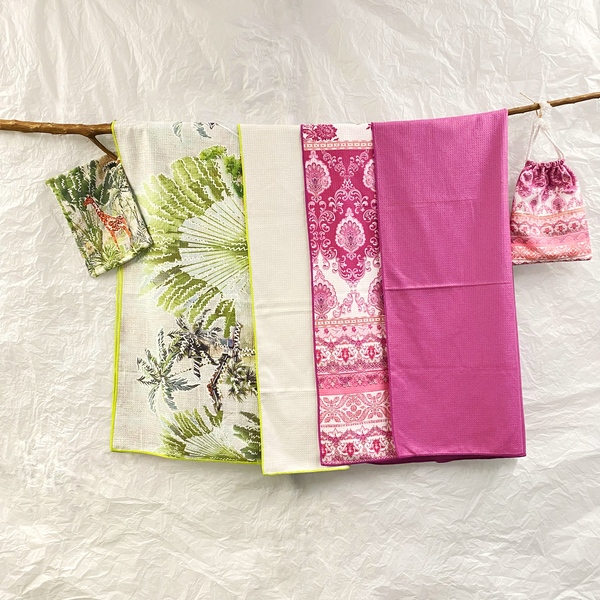 We pack it in a reusable and stylish carrying bag. This super absorbent towel is perfect for beaches, marinas and bays, pools, swimming, water parks, gyms, fitness, tennis, yoga, camping, hiking, spa, massage, sauna.